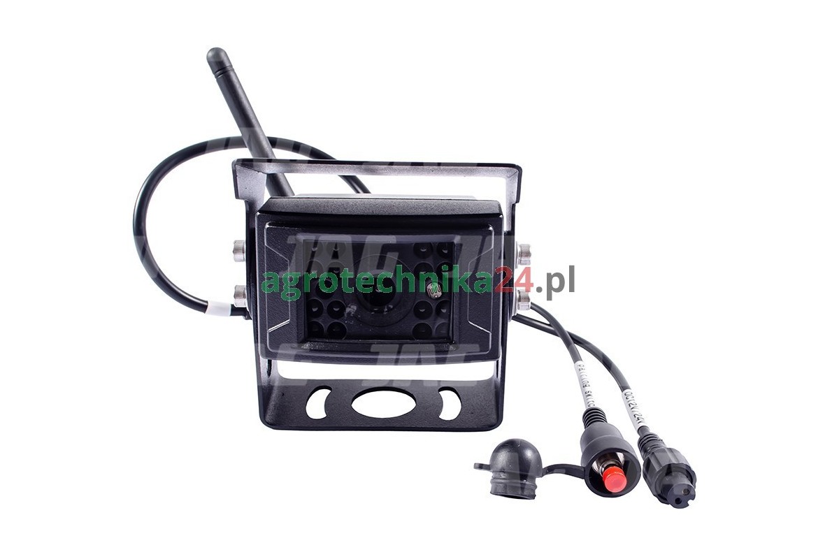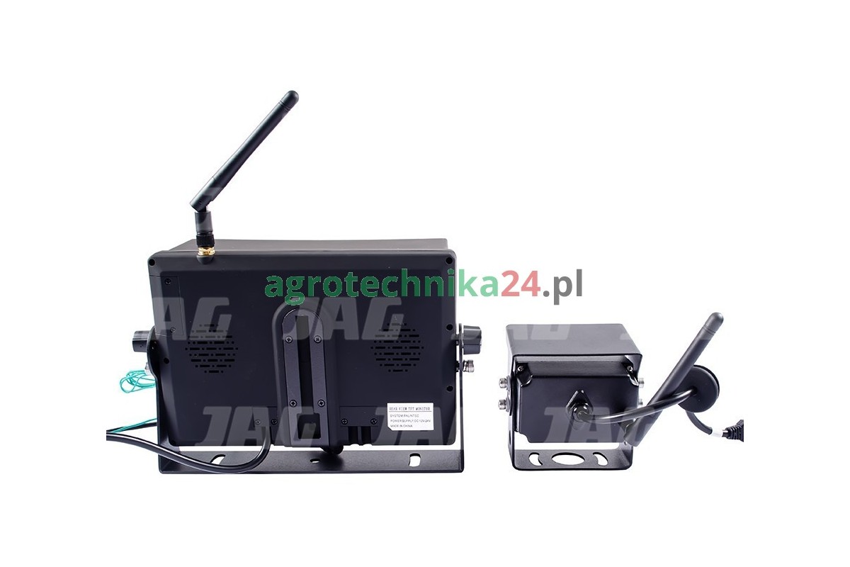 Zestaw bezprzewodowy monitora i kamery do obsługi monitoringu między innymi ciagników rolniczych, kombajnów zbożowych itp. System obsługuje maksymalnie 2 kamery.
