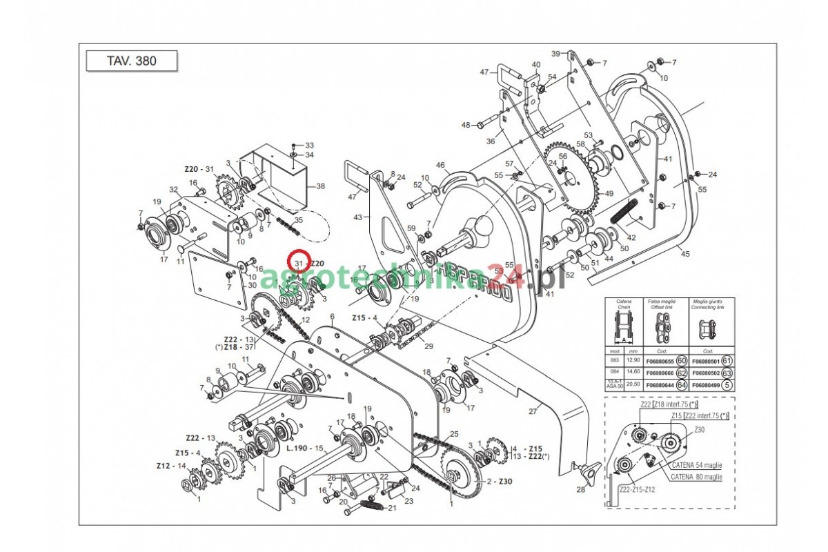 Liczba zębów: 20Skok łańcucha (cal): 1/2
